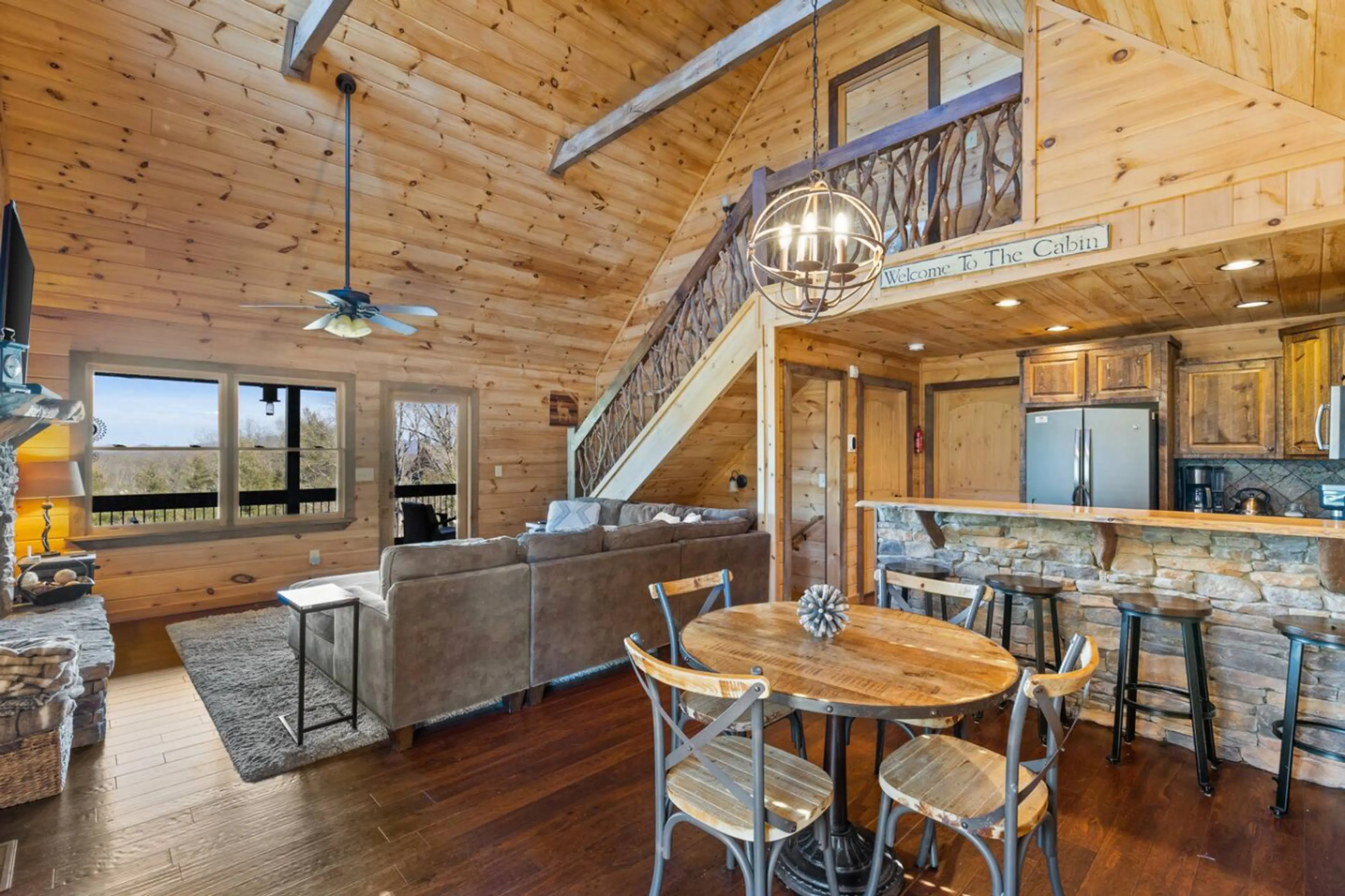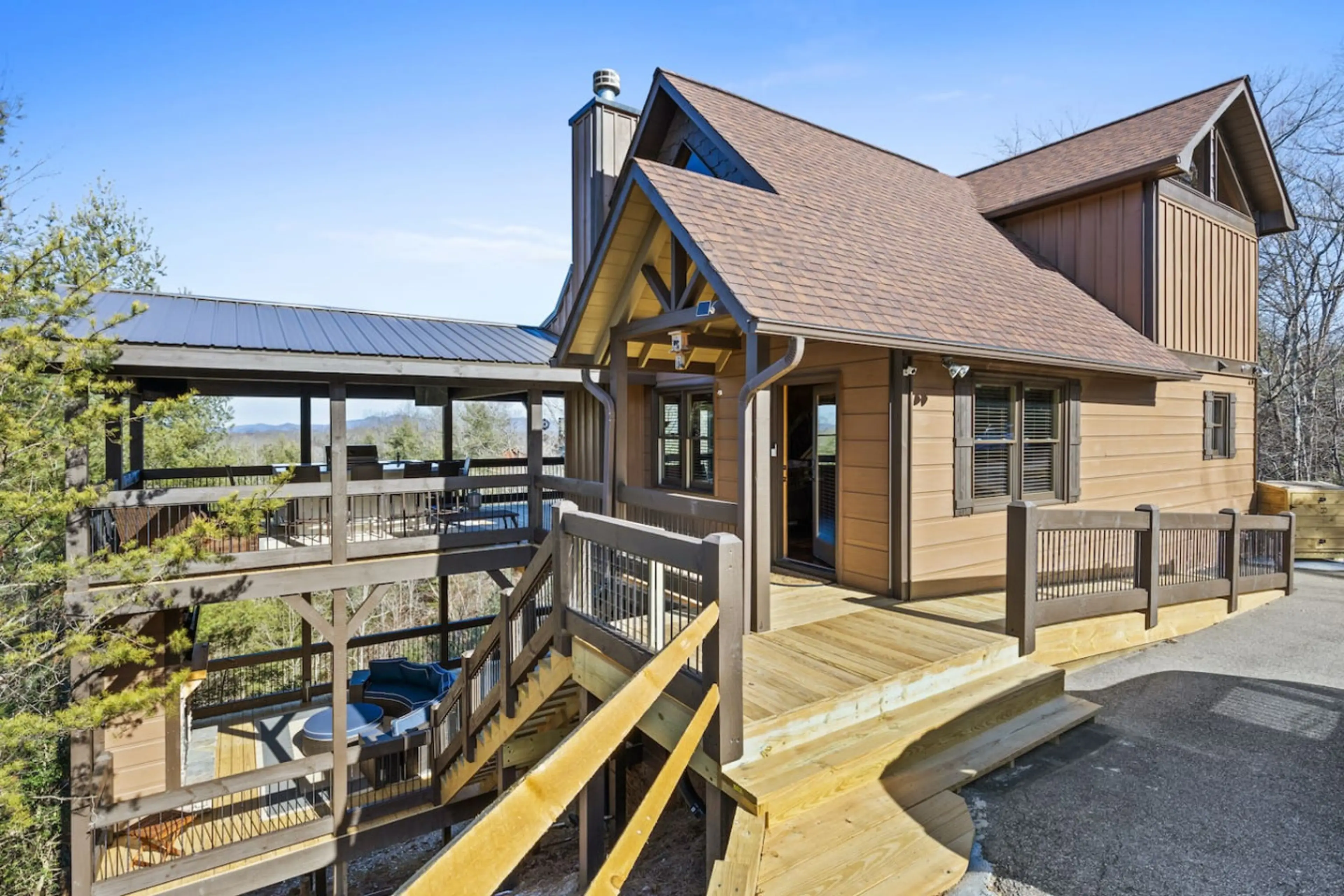 Welcome to Arbor Hill Ga! We would love for you to stay at our cabin in the woods that is conveniently located less than 5 miles from downtown Blue Ridge. Enjoy the serenity of the mountains, with a long range mountain view! If you love to be outdoors, you can spend your entire vacation outside under cover of our massive decks. The top deck provides a full outdoor kitchen, with a bar, equip with two TV's for watching your favorite game or show. Downstairs you can enjoy an outdoor fireplace while sitting on our wrap around sofa or watch your favorite movie under the stars! Don't miss the private hot tub, also on the lower level! Inside, you can enjoy your travel companions in the open living room and kitchen, or you can retreat to one of the private bedrooms, all with their own en-suite bathroom. Don't miss the game room in the basement to enjoy a little air hockey, an old time PacMan video game or compete with one of our classic board games which can be found in the wet bar. Come enjoy all that Arbor Hill Ga has to offer!